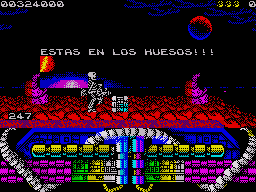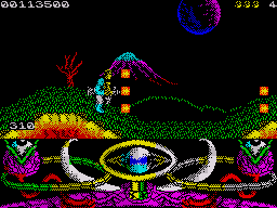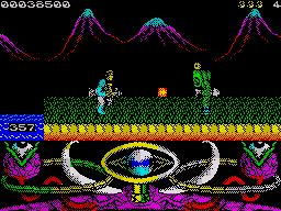 Версия для Спекки состоит из двух частей, разделенных на отдельные игры. Графика на высоком уровне, хотя скроллинг и движение персонажа реализованы по знакоместам (позволяет сохранить цвета). Чтобы запустить 2-ю часть игры необходимо ввести код: DAGOBAH.