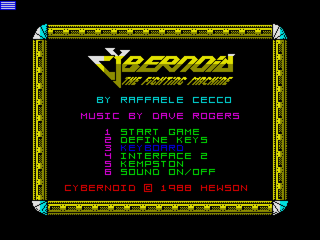 В заключении приведу чит-коды для этой игры. Они зависят от версии Cybernoid. Есть демо-версия и полная. Лично мне в эпоху загрузок с кассеты попадалась лишь демо-версия (судя по коду). Для ввода чита вам необходимо при переназначении клавиш управления (Define Keys) - ввести KG88 или YXES для демо и полной версий соответственно. Вообще, судя по одному из многочисленных описаний Cybernoid состоит из двух уровней в демо версии и более двух в полной версии... Надо глянуть.